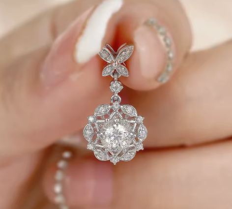 עגילי מויסניט פרחוניים | עגילי מויסניט פרחוניים יוקרתיים | EW170
